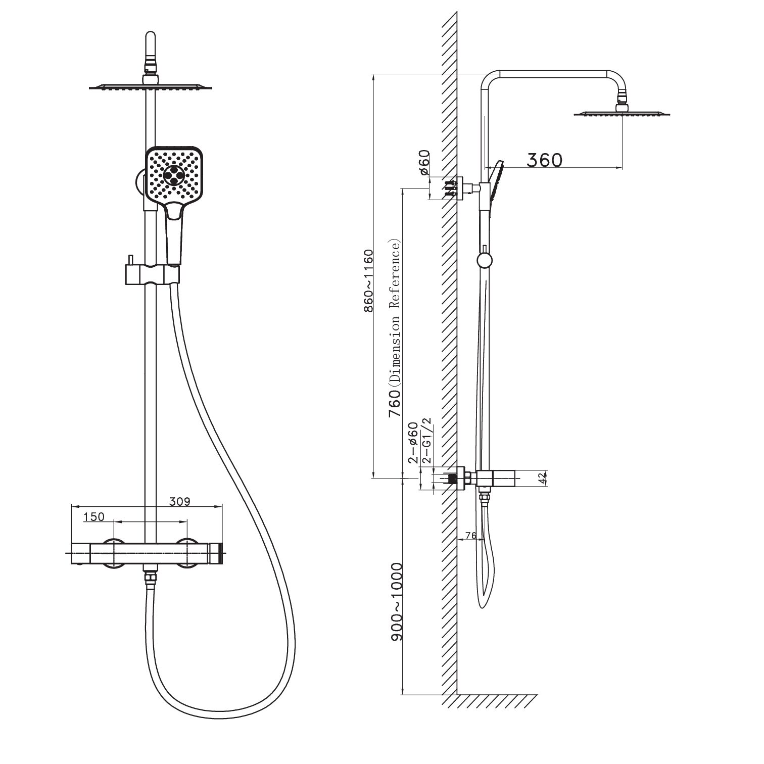 Termostatska baterija sa usponskim tušem QOW TS Crni