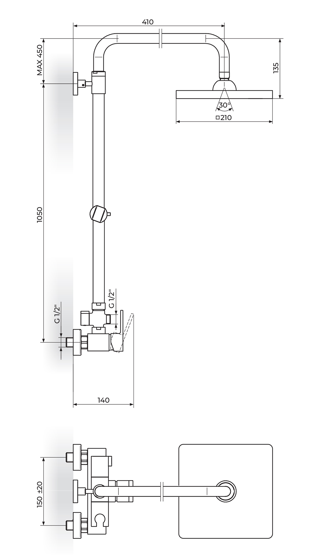 - Zglobna tuš ruža 200 x 200mm - PTRUSP5
