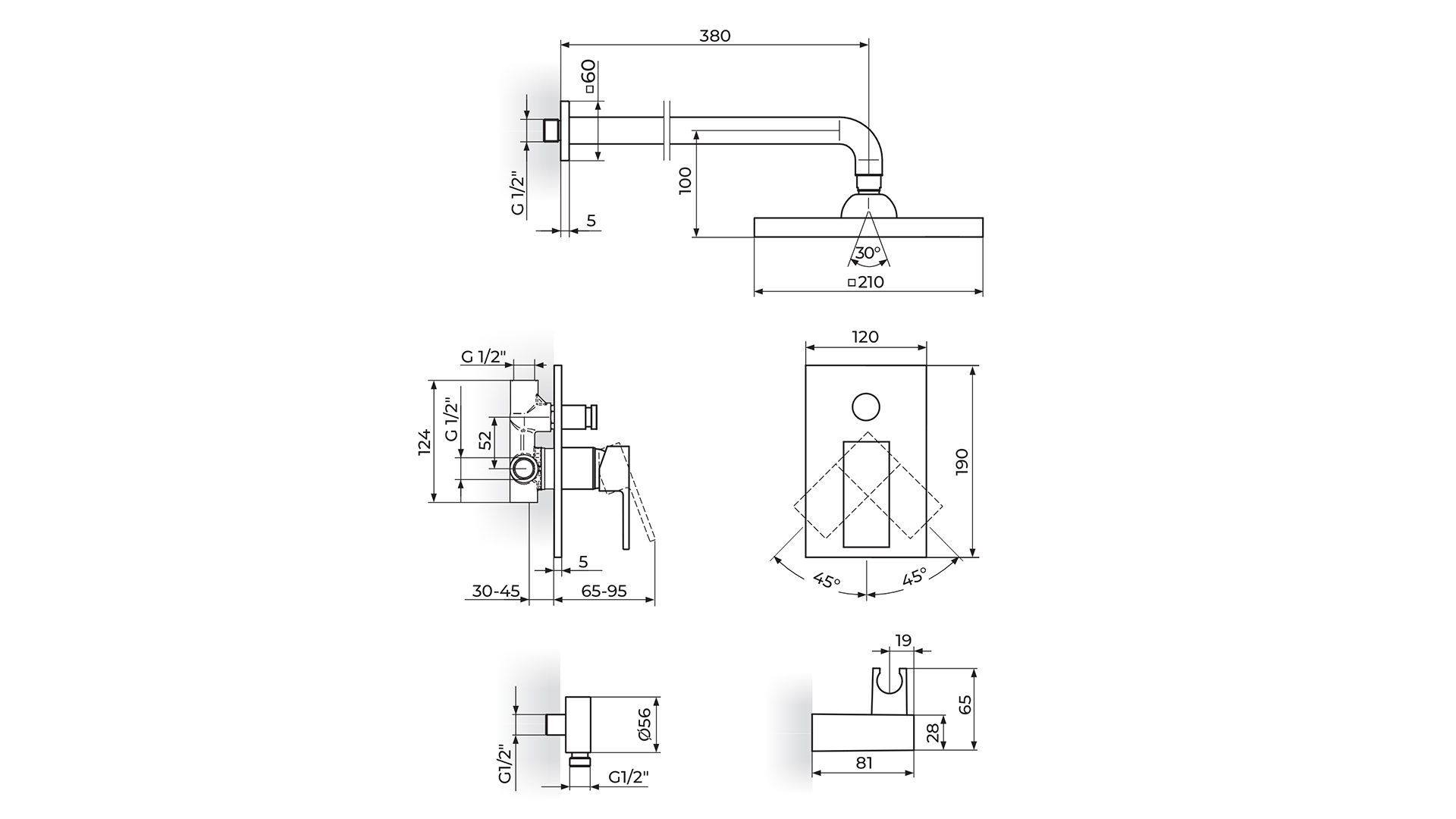 - Zglobna tuš ruža 200 x 200mm - PTRUSP5