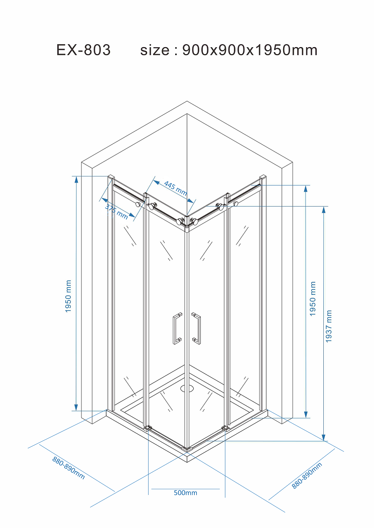 Tuš kabina EX-803 opremljena je kliznim vratima, koja omogućavaju efikasno korišćenje prostora bez potrebe za dodatnim prostorom za otvaranje vrata.