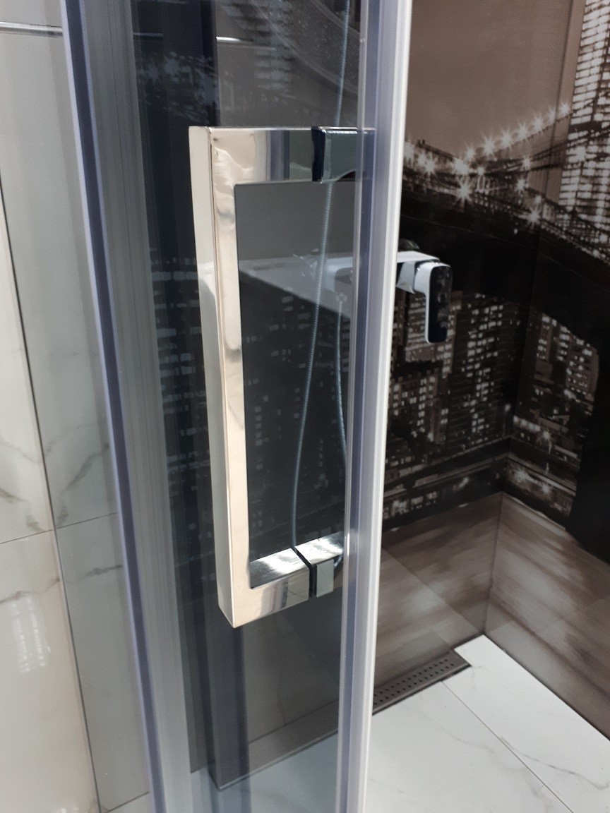 Ulazna širina od 50cm pruža dovoljno prostora za udoban ulaz i izlaz, dok metalne hromirane ručke dodaju završni detalj u luksuznom izgledu.