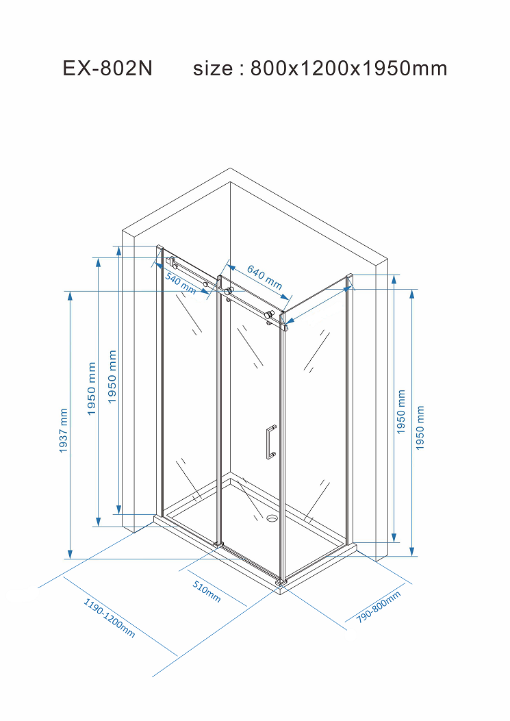 Tuš kabina EX802N Matt Black 80x120cm