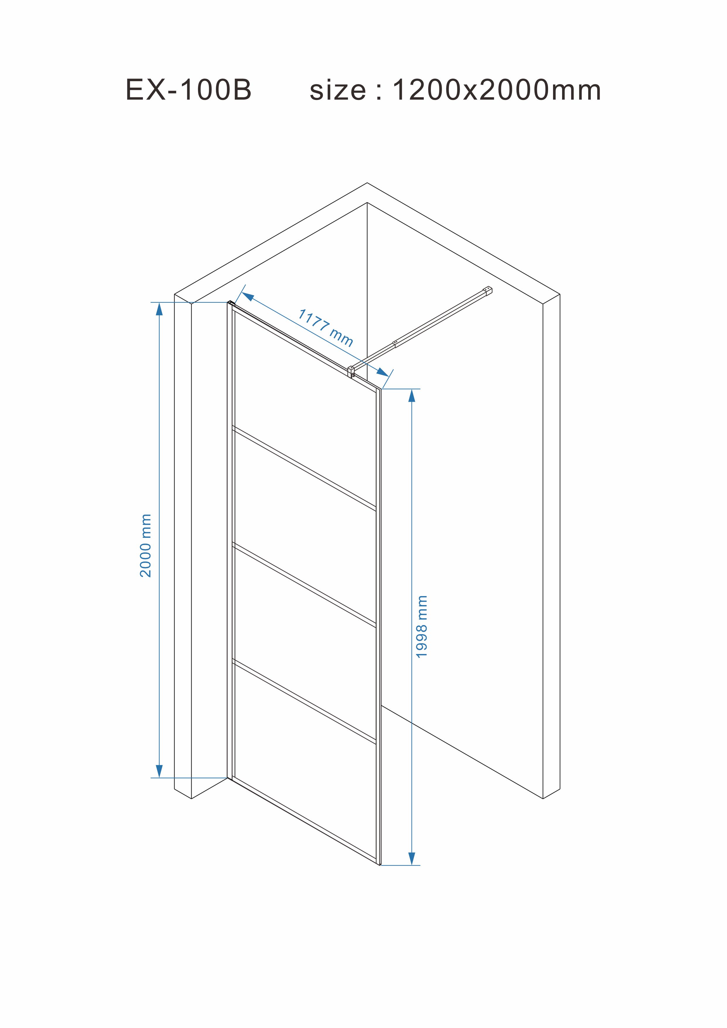 Tuš paravan EX-100B-1 Walk-in crni 120cm