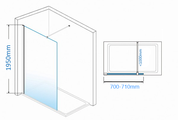 Walk-in tuš paravan Fonte 70cm