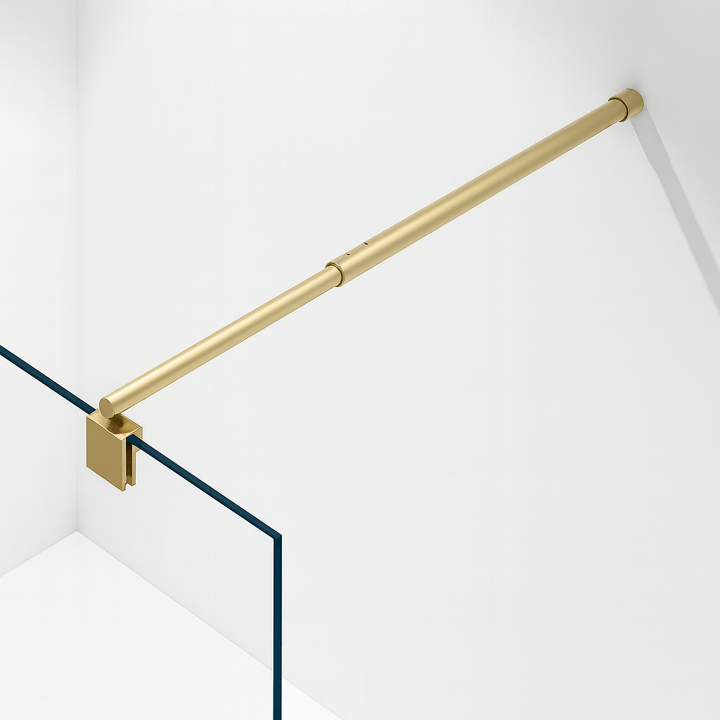 Sa fiksnom konstrukcijom i sofisticiranim zlatnim detaljima, ovaj paravan pretvara svakodnevno tuširanje u vizuelno i taktilno zadovoljstvo.